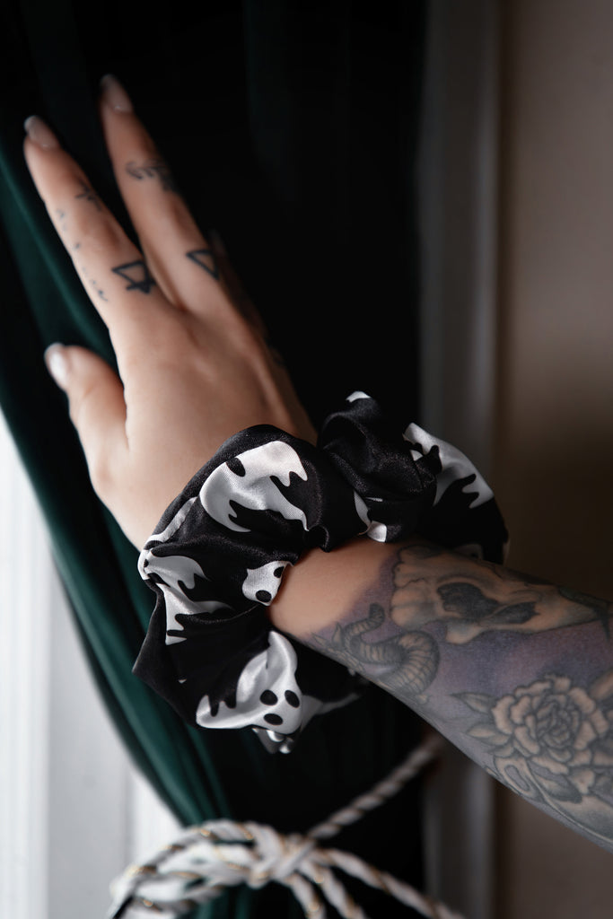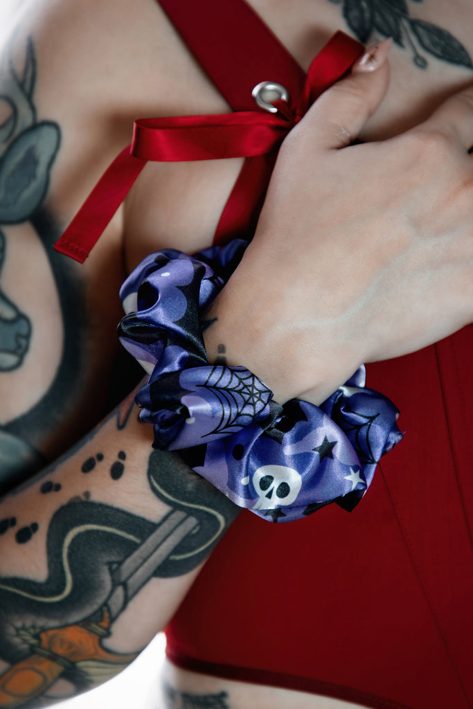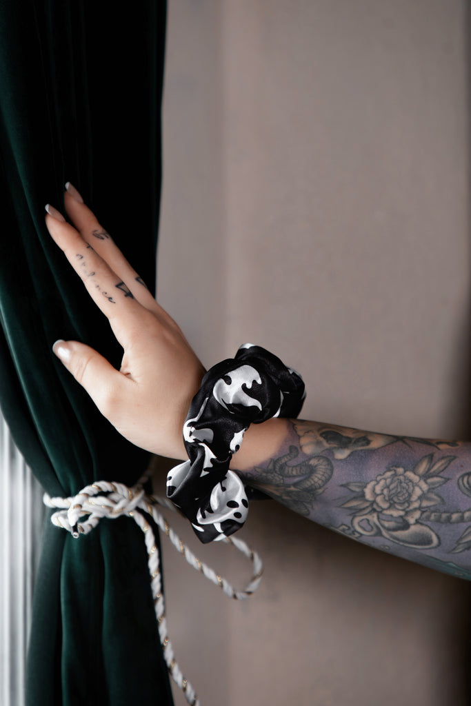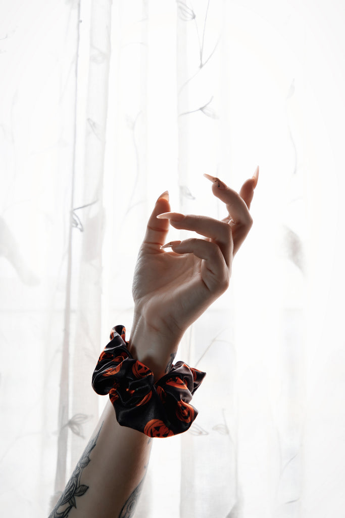 Crafted from the same crisp vegan silk satin as our sleepwear sets, these scrunchies are smooth, stretchy, and gentle on your hair. Whether you're winding down or dressing up your ponytail with a little seasonal spirit, these soft-yet-durable beauties are here to elevate your everyday.