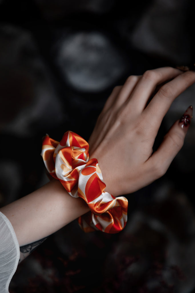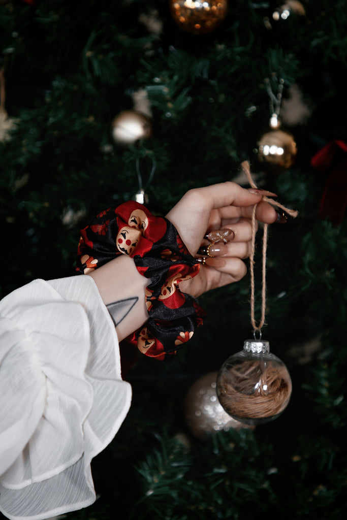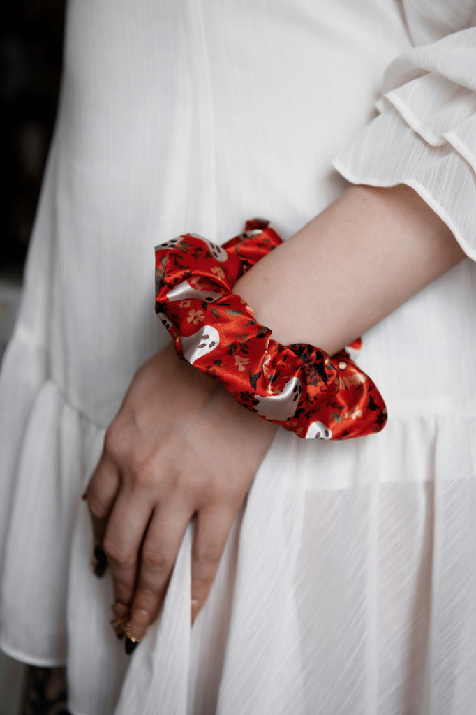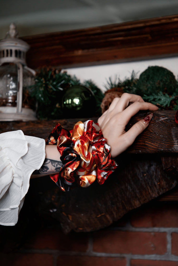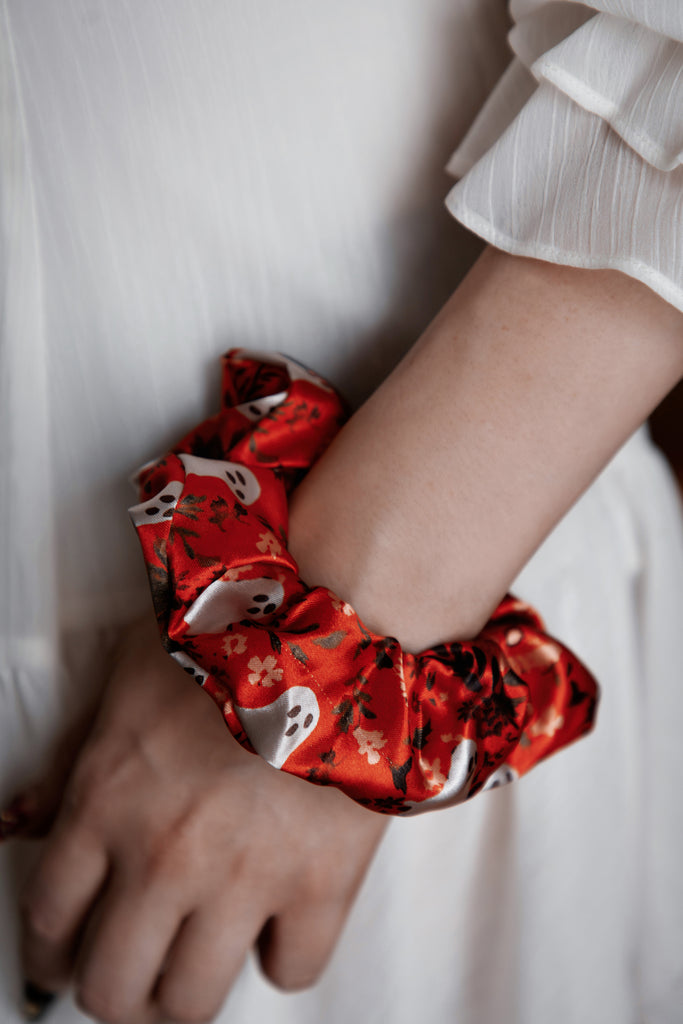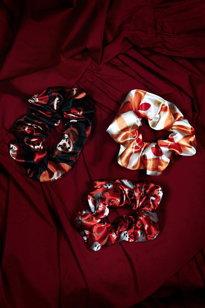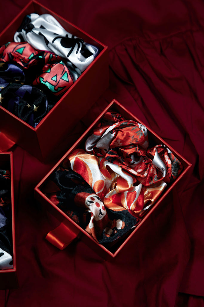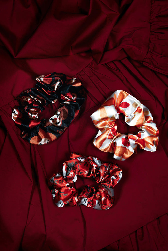 Crafted from the same crisp vegan silk satin as our sleepwear sets, these scrunchies are smooth, stretchy, and gentle on your hair. Whether you're winding down or dressing up your ponytail with a little seasonal spirit, these soft-yet-durable beauties are here to elevate your everyday.