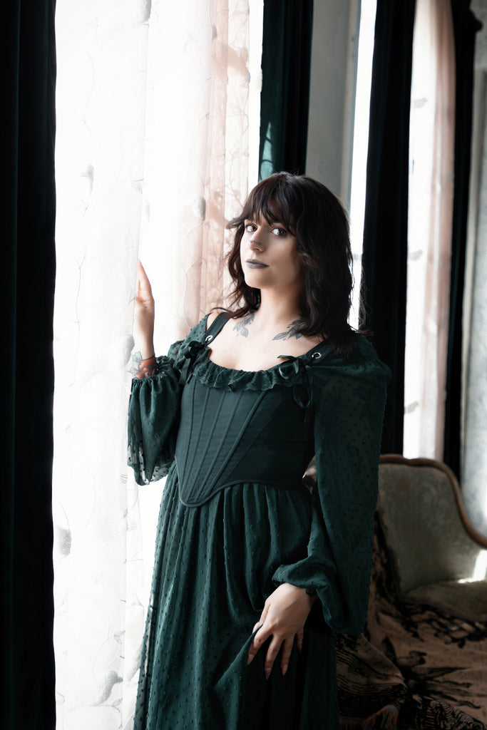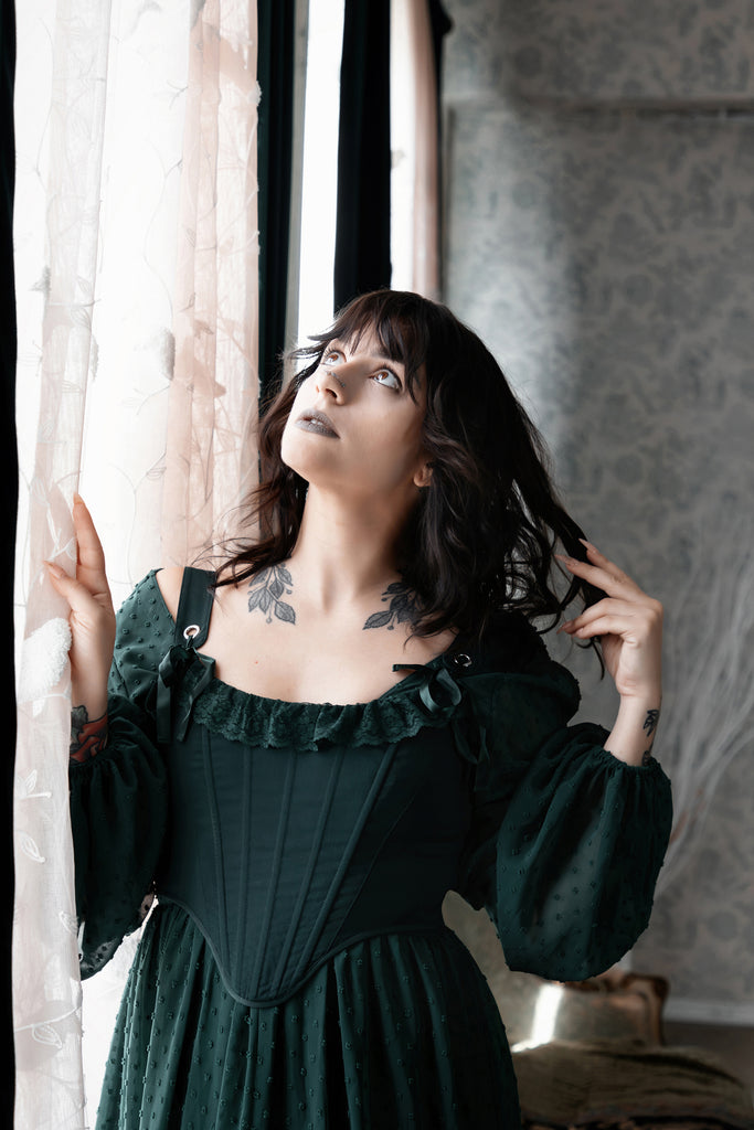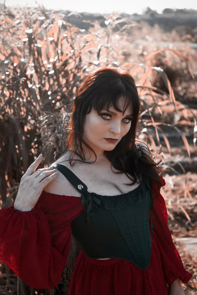 • Style + Features : Built-in boning structure, lace embellishment on neckline, satin webbing connection