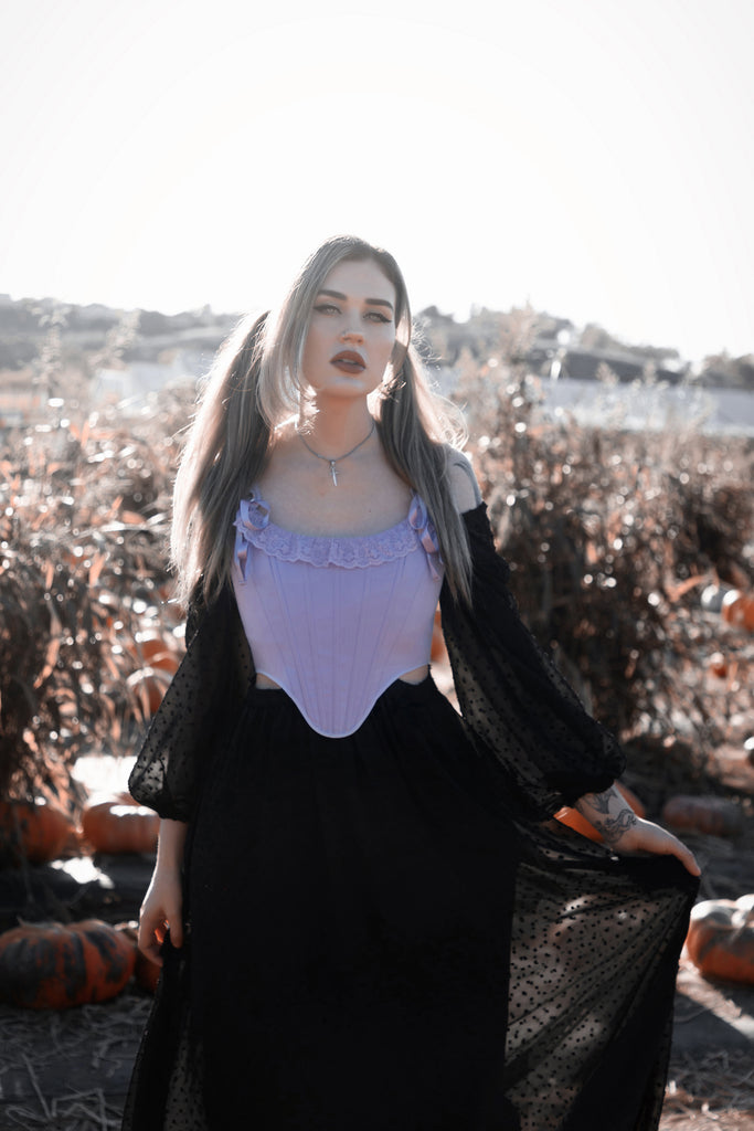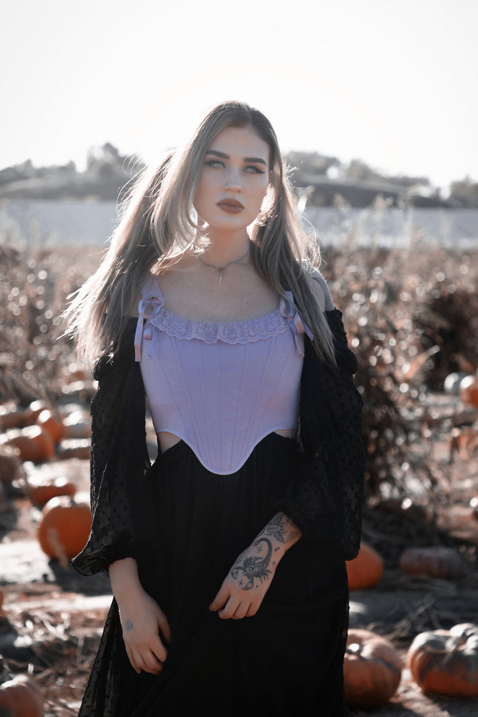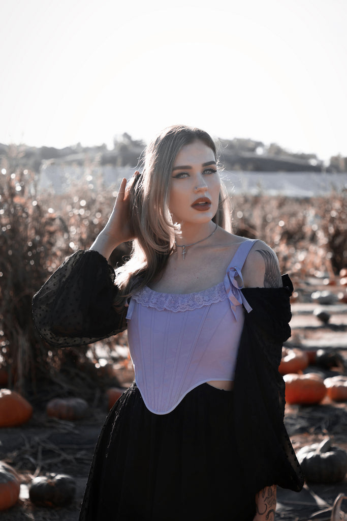 • Style + Features : Built-in boning structure, lace embellishment on neckline, satin webbing connection
