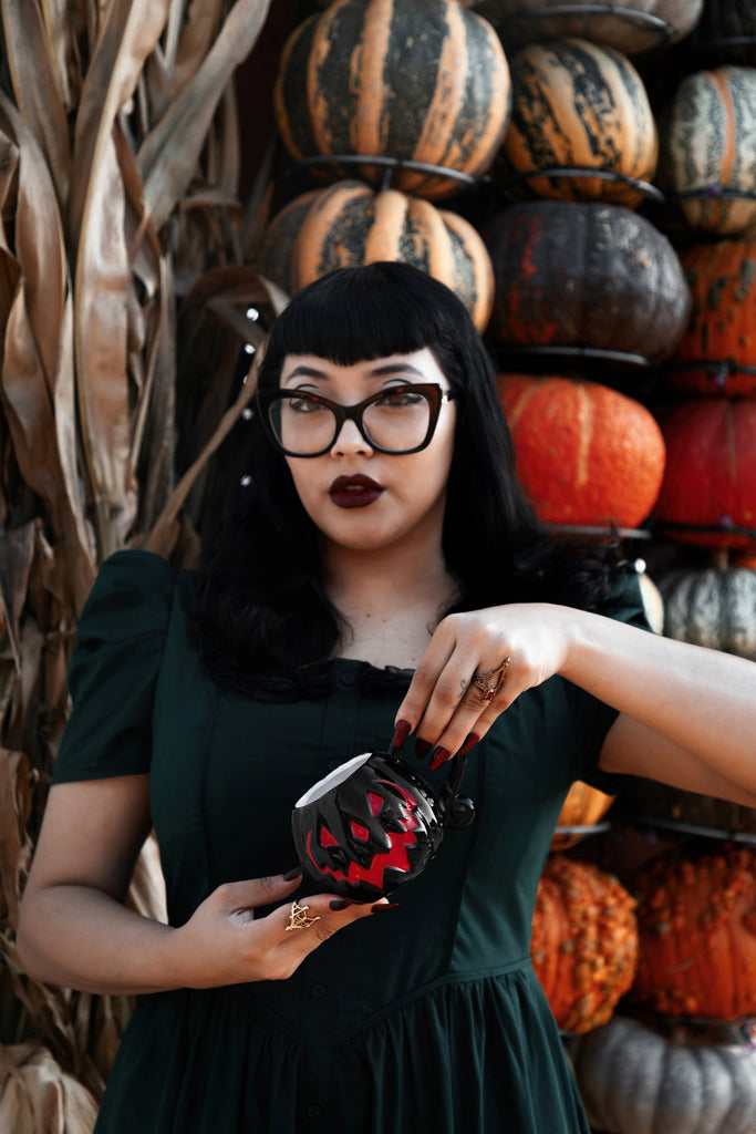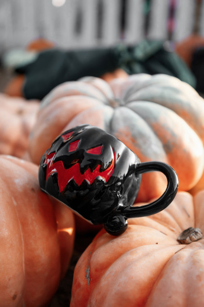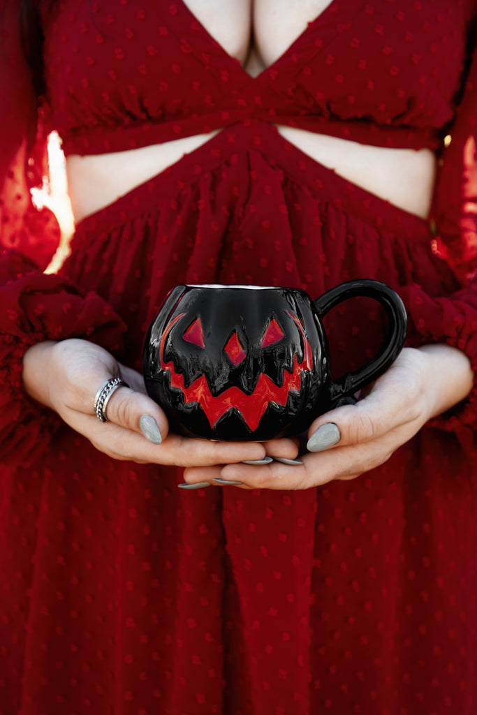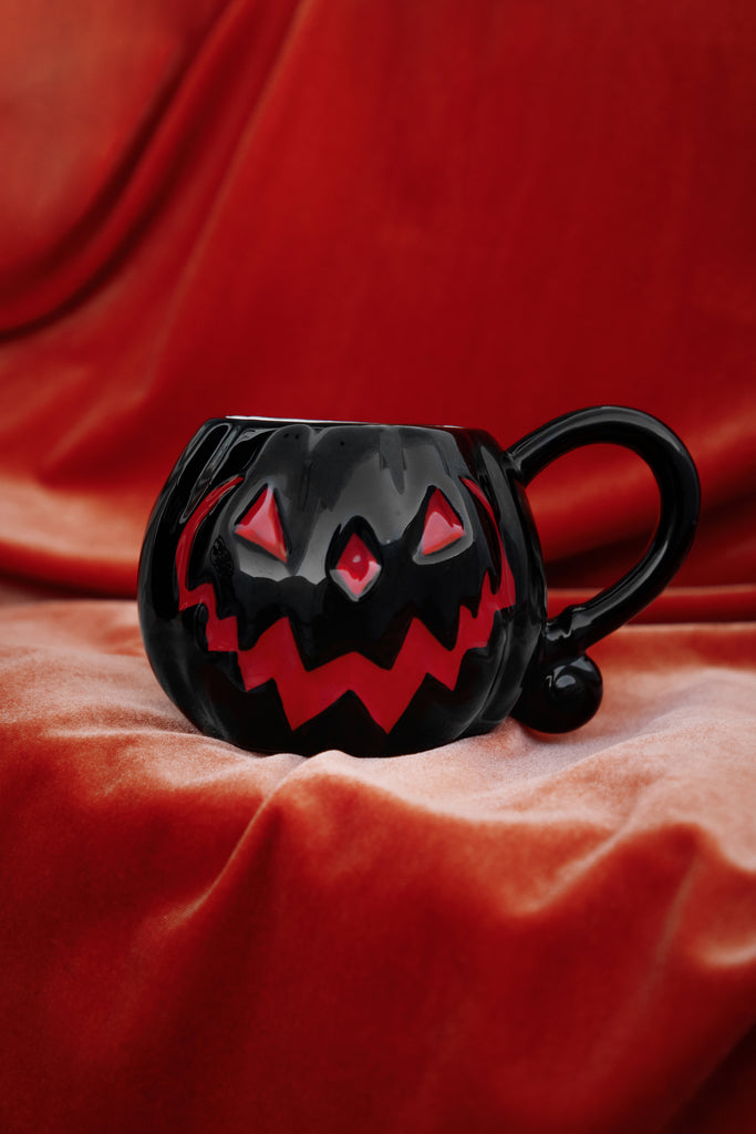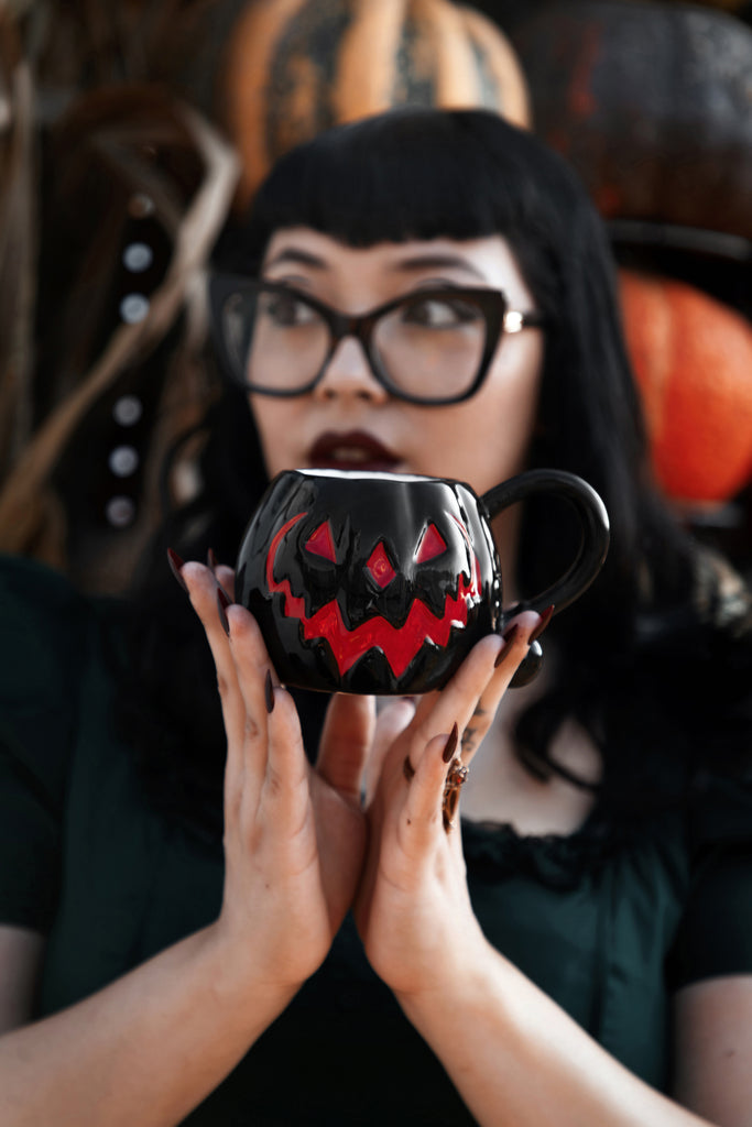 This pumpkin-shaped mug holds 12oz of coffee, tea, or whatever your delicacy might be. Please note this will come in the standard mug box from the traditional Haunted Hallows Mug.